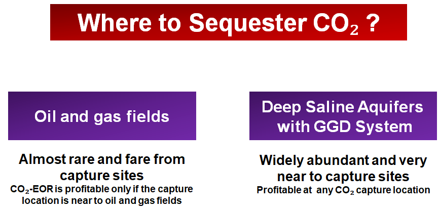 - Deep saline aquifers are suitable for safe CO₂ sequestration , because they are more common than oil and gas fields, especially near +90% of urban areas around the world where most CO₂ is emitted. Also, fortunately, the vast majority of which have permeability, porosity. and sealing characteristics that oil and gas reservoirs process so they can be used for safe storage.